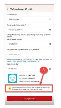 Sau khi hoàn tất khai báo, tích chọn cam kết thông tin khai báo là chính xác, rồi nhấn “Gửi yêu cầu” để hoàn tất bước đăng ký.